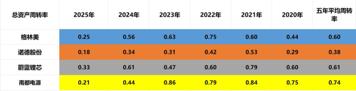 营运能力:蔚蓝锂芯>格林美>南都电源>诺德股份
